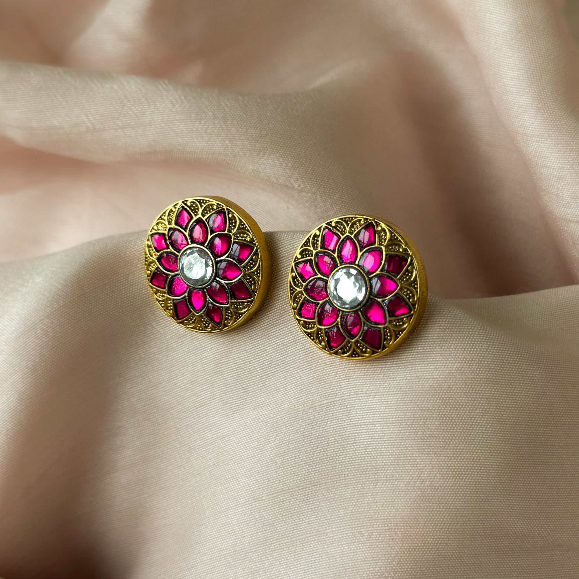 Kalamkari Pink Tops Earrings