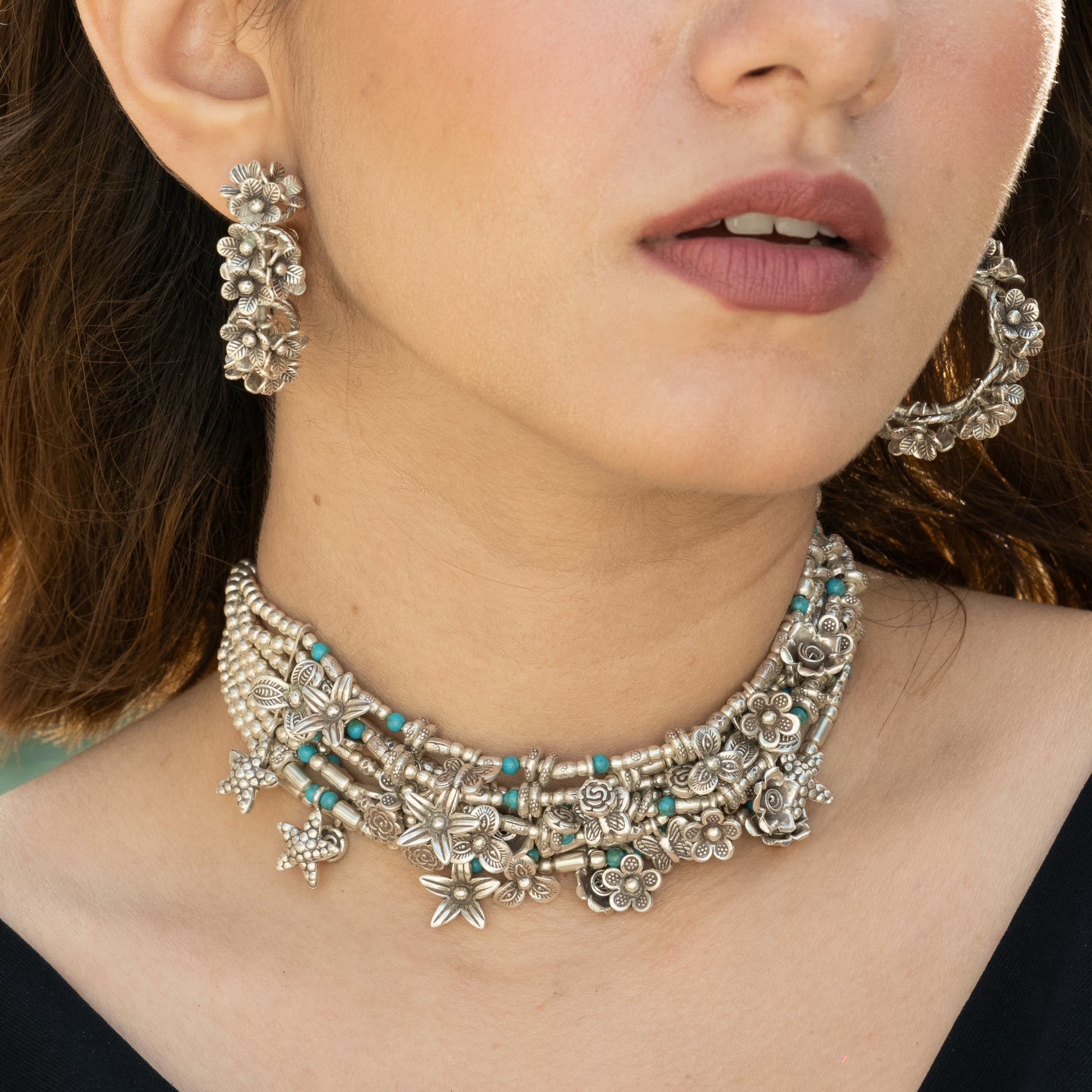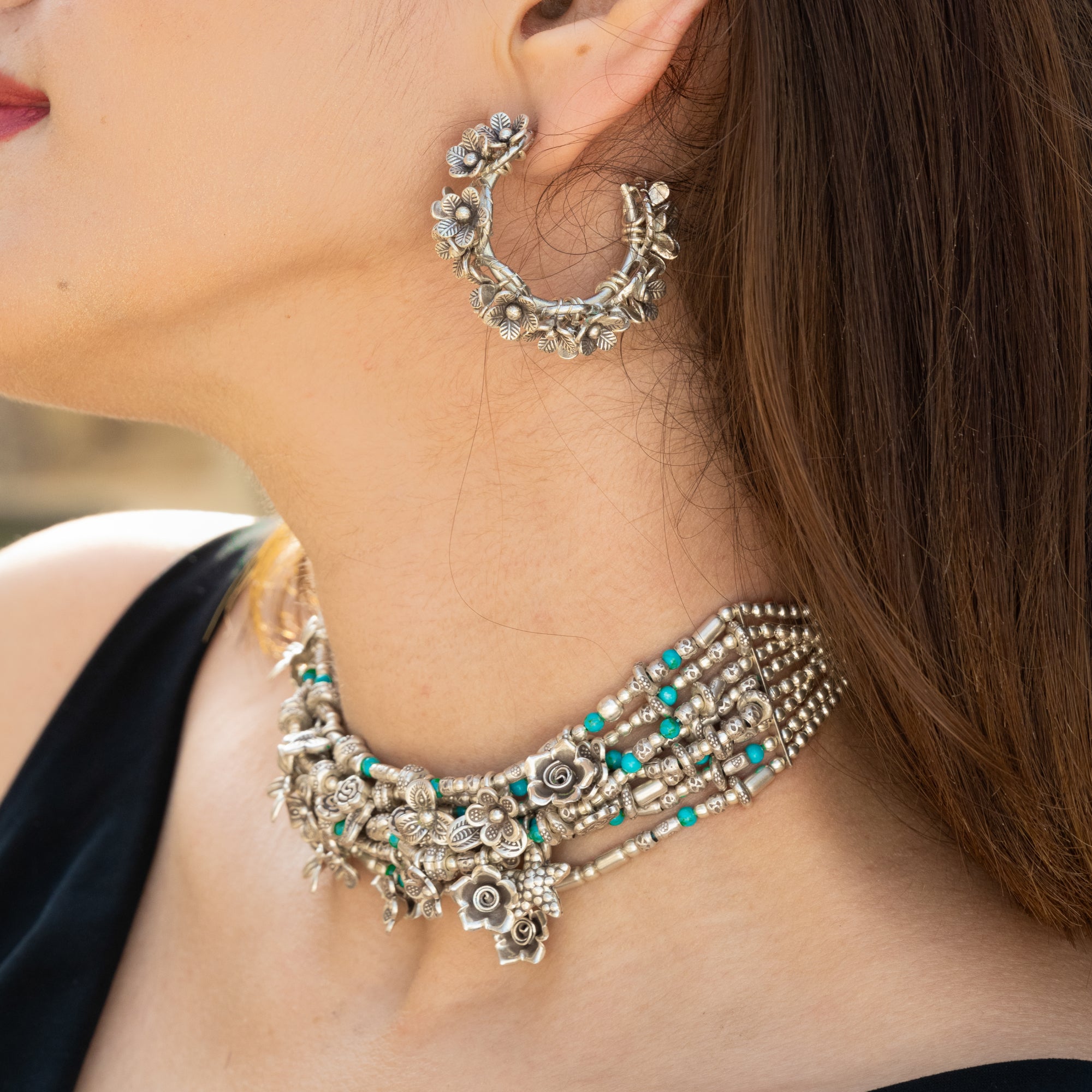 Modern Firoza Floral Choker with Classic Hoops