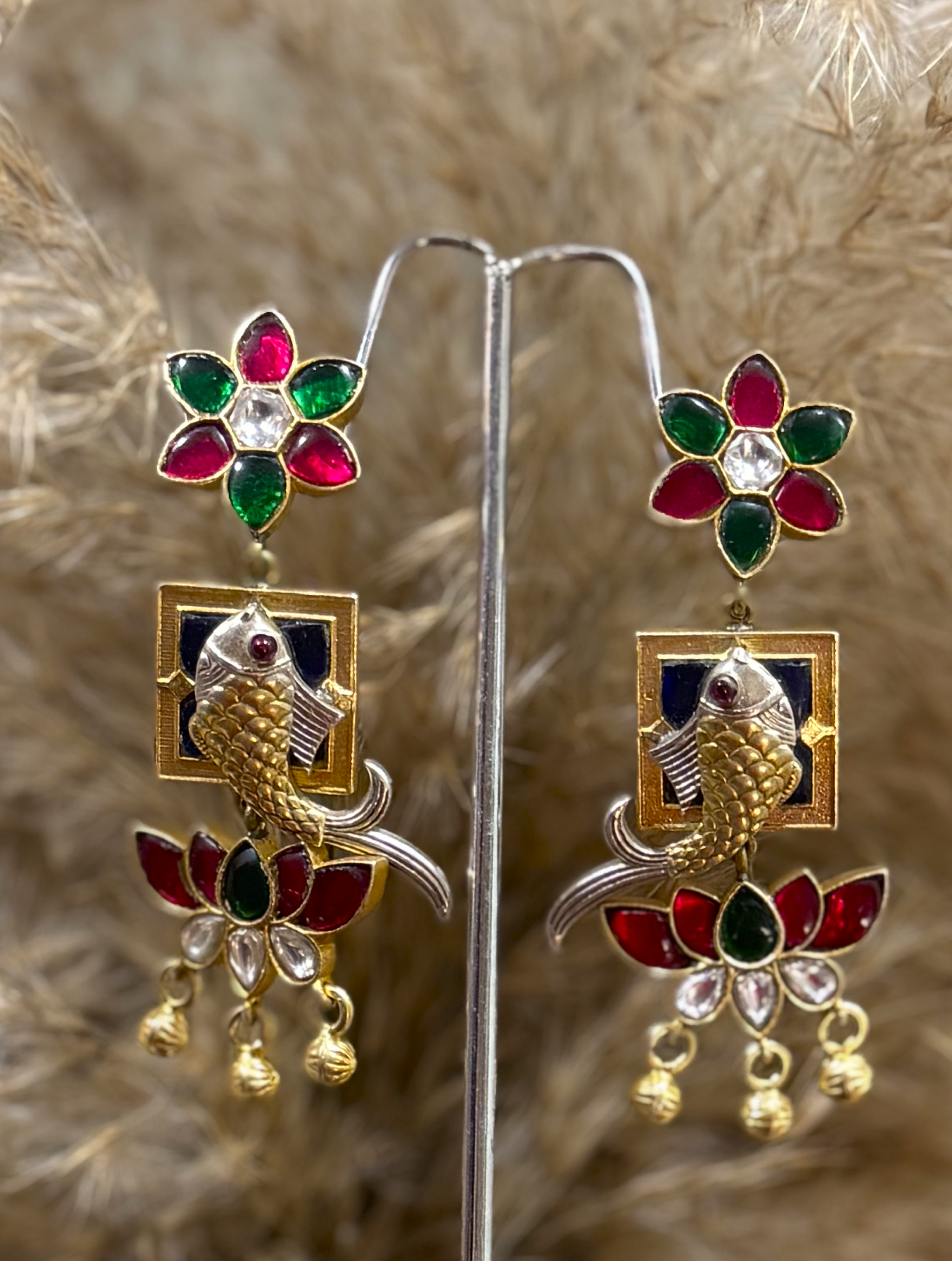 Inspired by open streams stirred by a gentle breeze, these 925 silver dangler earrings feature flowing aquatic elements brought to life with detailed tarkashi craftsmanship. Designed to move gracefully, they make a poetic statement.